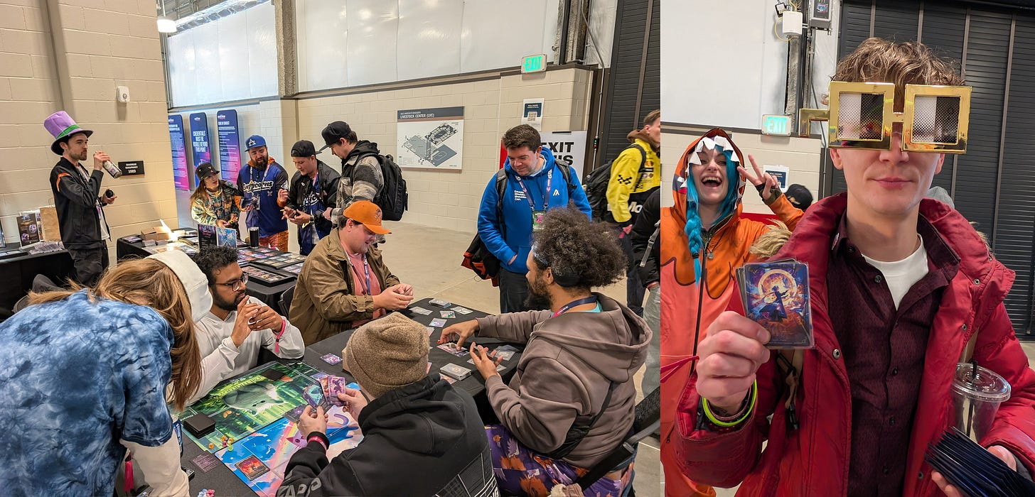 One of my favorite moments: a player who spent all four days collecting every single card in the base set. Buying packs. Trading nonstop. Coordinating with strangers. By the end, they had the full set. Legendary behavior.