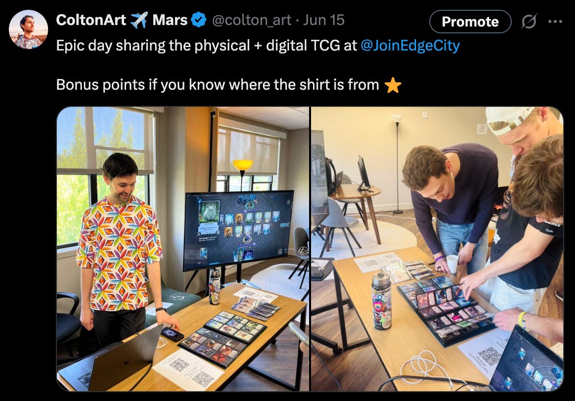 Instead of getting boring mugs or t-shirts, imagine getting booster packs with exclusive cards that you can play and trade with your frens - EPIC.
