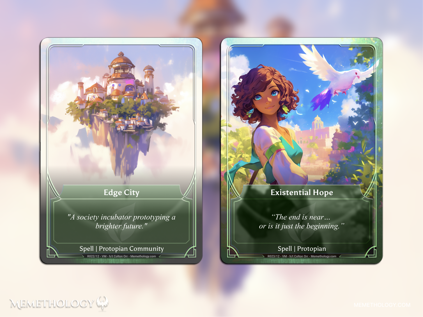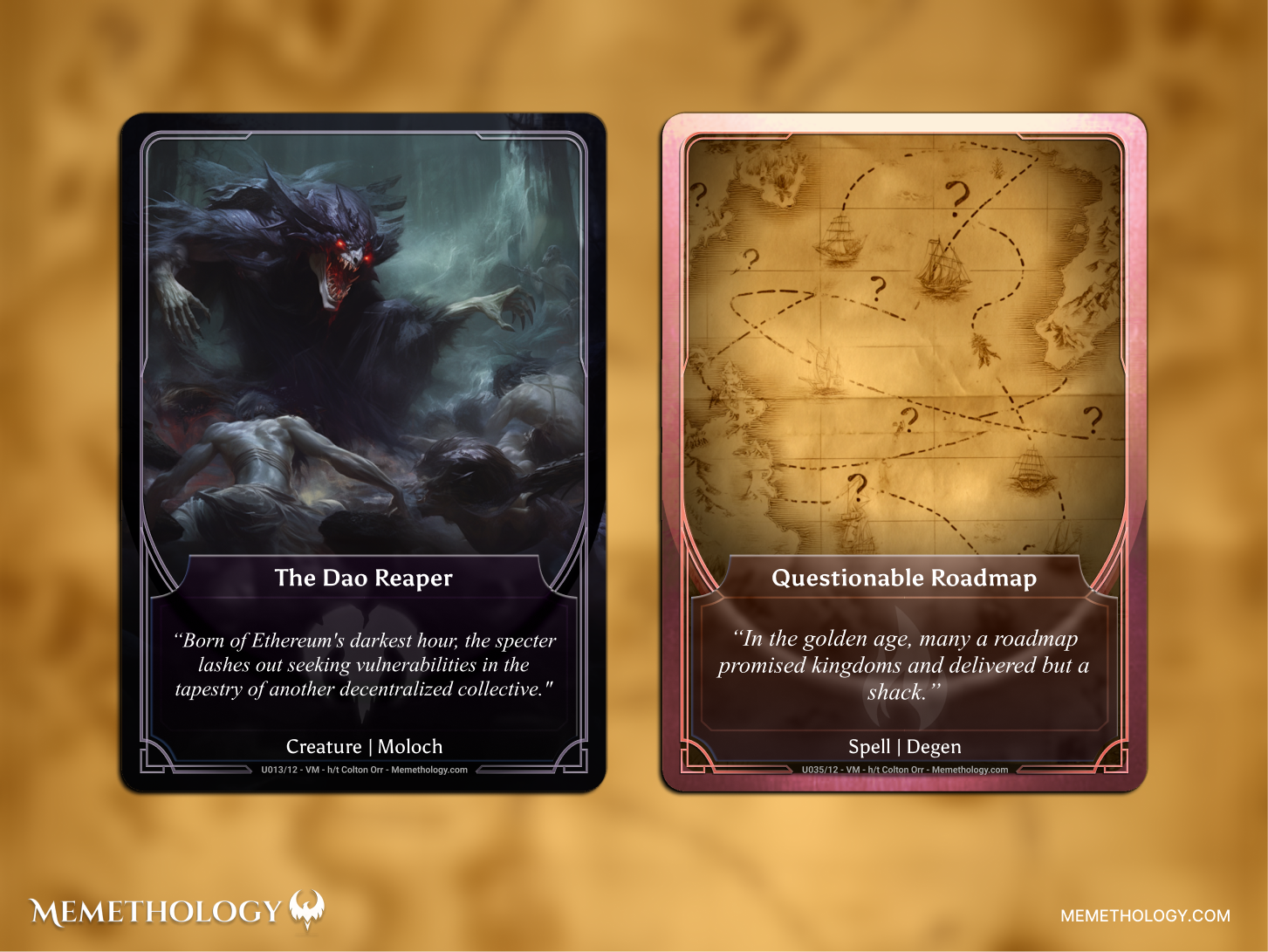 Claim reward cards (e.g. first 69 collectors get X, share Memethology to get Y)